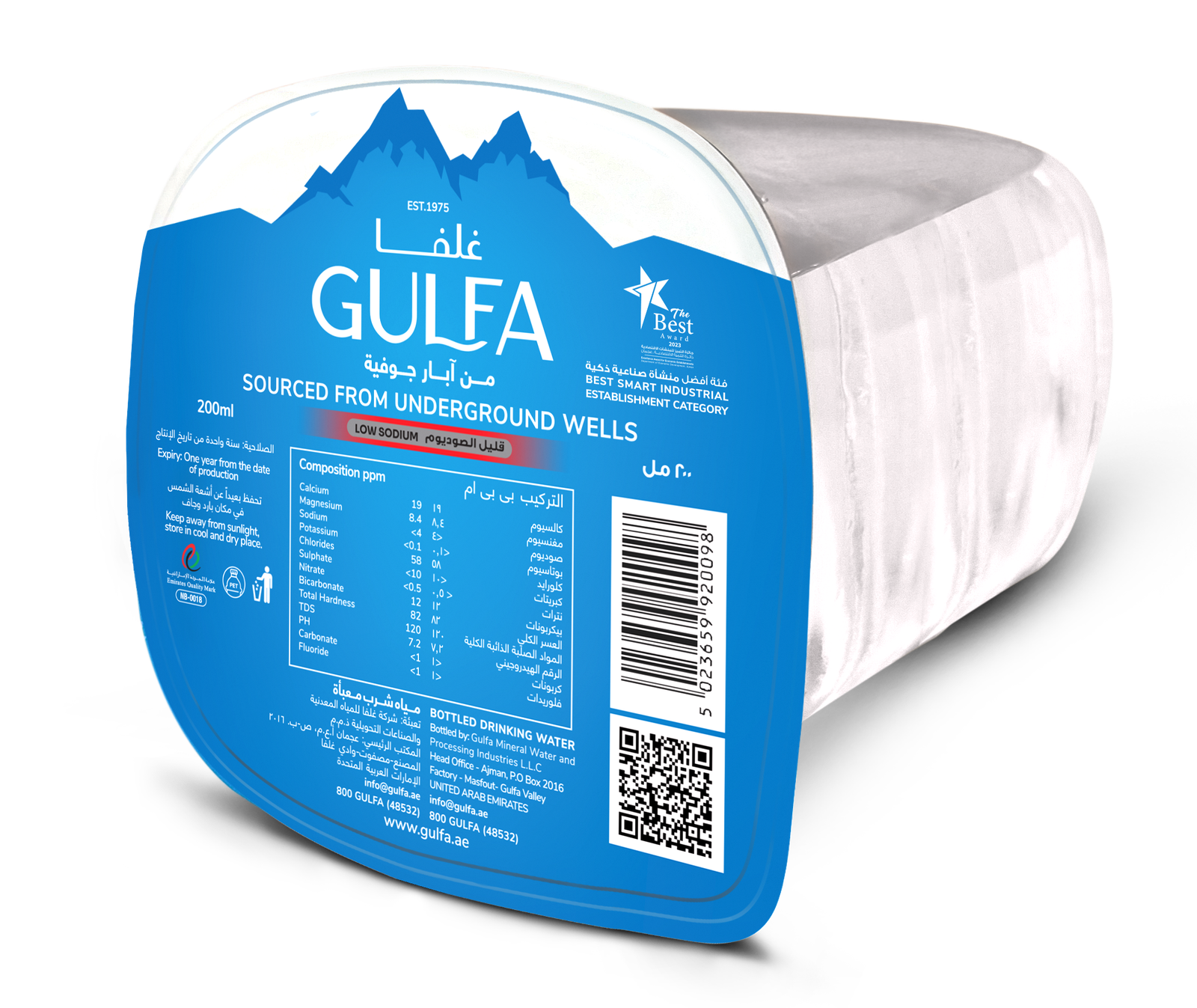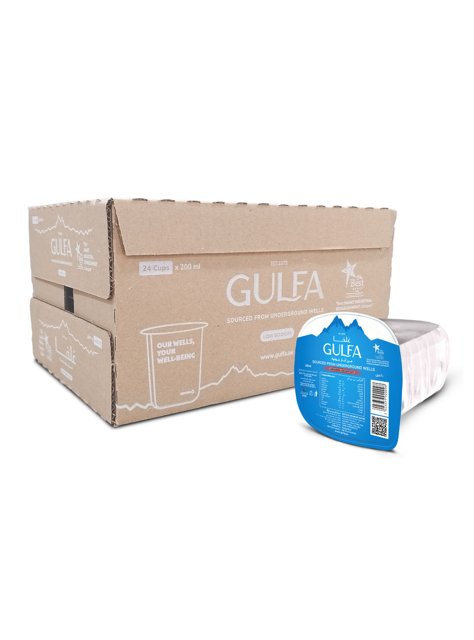 Carton of 24 cups 200ML pure, mineral-rich water sourced from Masfout Mountains.